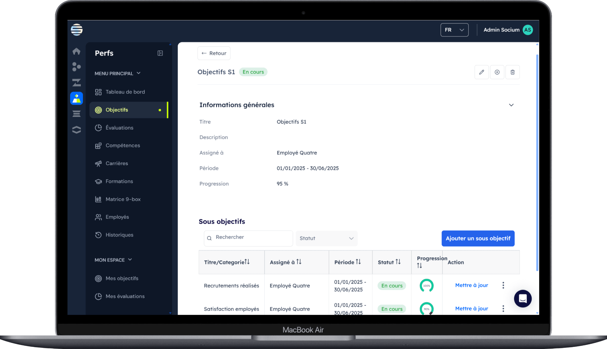 Socium Perf vous donne les outils pour aligner vos équipes sur les objectifs de l'entreprise et développer leur potentiel.